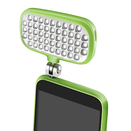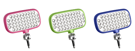 Die neue mecalight LED-72-smart-Leuchte bietet auf kleiner Fläche viel Licht für die Aufnahmen von Selfies oder anderen Objekten bei wenig Umgebungslicht. Ihre Leuchtfunktion ist dabei über einen Knopf an der Rückseite in 3 Stufen wählbar: Volle Leistung, reduzierte Leistung und Blinken. Es gibt die LED-72 smart in den fünf Farben Schwarz, Weiß, Pink, Grün und Blau.