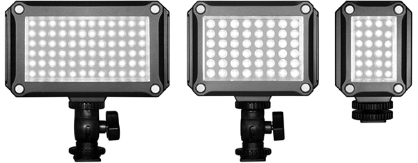 Die neuen mecalight LED-Videoleuchten LED-480, LED-320 und LED 160.