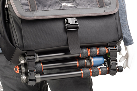 Sogar ein Stativ kann die kompakte Exposure 13 Fototasche aufnehmen.