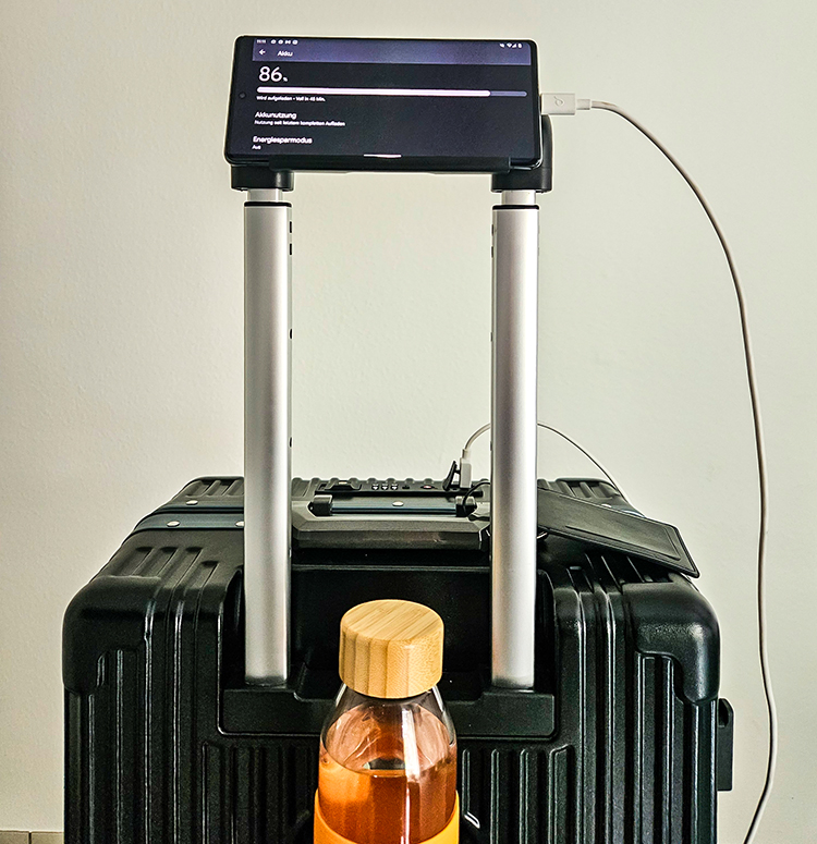 Der RealPower HGP-1 kombiniert durchdachtes Design mit praktischer Technik: In einem separaten, ausklappbaren Fach bietet der schwarze Hartschalenkoffer ausreichend Platz, um Tablet und Laptop bis 22 Zoll sicher zu verstauen und sie gleichzeitig über eine optionale Powerbank mit Energie zu versorgen. Zusätzlich ermöglichen externe USB-Ports an der Außenseite auch das Laden von mobilen Geräten, ohne den Koffer öffnen zu müssen. Für extra Komfort verfügt der HGP-1 über einen Getränkehalter sowie eine ausklappbare Smartphone-Halterung am Teleskop-Griff. So lässt sich das mobile Gerät ideal positionieren, um die Wartezeit bequem mit einem Film zu überbrücken. Dank der vier leichtgängigen Rollen lässt sich der Koffer mit den Maßen 385 x 595 x 245 Millimetern (B x H x T) mühelos auf unterschiedlichstem Terrain wie Flughäfen, Bahnsteigen oder Campingplätzen bewegen.