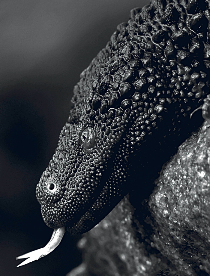 Der Bildband „Reptilia“ zeichnet sich daher neben den kunstvollen Schwarzweiß-Porträts bizarrer und urzeitlicher Lebewesen auch durch unterhaltsame und humorvolle, ebenso wie spannende Texte rund um die faszinierenden Reptilien aus.