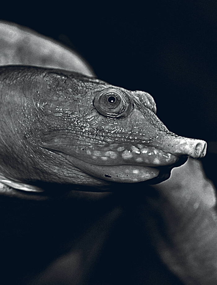 Für den Fotografen Tom Krausz, der schon immer Tiere aufgenommen hat, war deren „gefährliches“ Aussehen jedenfalls maßgebend dafür, sich den Reptilien besonders zu widmen, was der im Natur- und Tier-Verlag, Münster, erschienene Bildband „Reptilia“, Untertitel „Köpfe der Urzeit“, mit eindrucksvollen Schwarzweiß-Porträts belegt. Eingeteilt in die Bereiche Europa, Asien, Afrika und Arabien, Amerika, Australien und Ozeanien versteht er es meisterhaft, die bizarren und urzeitlichen Lebewesen gekonnt in Szene zu setzen und über 60 Arten vorzustellen. Beim Porträtieren der Reptilien kam ihm entgegen, dass diese sich in der Regel langsam oder fast gar nicht bewegen. „Der intensive Blick auf Augenhöhe mit den Tieren, genügend Licht und ein gestalterisch sehr reduziertes Bild nur der Köpfe waren die Ansätze meiner fotografischen Arbeit“, erläutert Tom Krausz.