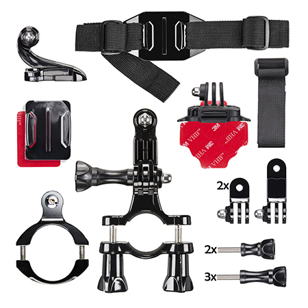 Vor allem für Sportarten wie Fahrrad fahren, Mountainbiken oder auch Motocross eignet sich das GoPro Set Erde. Darin sind nicht nur verschiedene Rohrhalterungen für das flexible Befestigen der GoPro am Lenker enthalten, sondern unter anderem auch Zubehörteile, um die Kamera am Helm anzubringen.