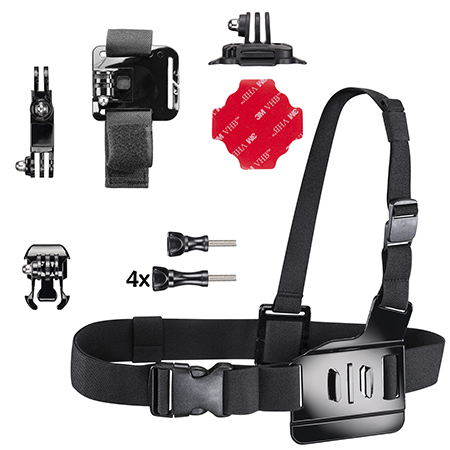 Mit dem GoPro Set Schnee und Eis bietet mantona für alle Wintersportler die passende Ausrüstung. Je nach Bedarf kann damit die Action-Cam entweder über den Helmgurt mit Anti-Rutsch-Beschichtung oder auch über den Brustgurt befestigt werden.