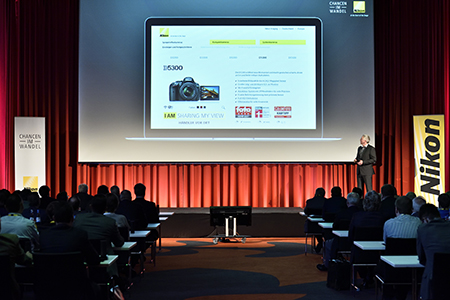 „Das ist der Anfang, um eine Begehrlichkeit beim Konsumenten zu schaffen“, so Uwe Keuchel. Wie dies in einem zweiten Schritt bei der Recherche über das Internet laut Nikon geschehen soll, schilderte Wolfgang Göddertz, Department Manager Marketing Communications bei der Nikon GmbH. Er wies daraufhin, dass auch die Kommunikationswege sich mit der Digitalisierung verändert haben und weiter verändern.