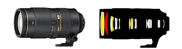 Die optische Konstruktion des neuen Telezooms umfasst 20 Linsen in 12 Gruppen, Vier ED-Glas-Linsen und eine Linse aus Super-ED-Glas sorgen für eine weitgehende Korrektur der chromatischen Aberration und für die Vermeidung von Farbsäumen, wie sie bei langen Telebrennweiten auftreten können. Für eine wirksame Reduzierung von Blendenflecken, Streulicht und Geisterbildern, vor allem in Gegenlichtsituationen, sorgt die Nanokristallvergütung.
