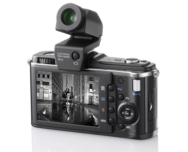 Die neue PEN E-P2 bietet durch den als Zubehör erhältlichen, elektronischen Sucher mit 1.440.000 Bildpunkten größere Flexibilität bei der Bildgestaltung. Er gehört mit zum Lieferumfang der Kamera und bietet ein 100%iges Bildfeld. Für das Fotografieren aus schwierigen Positionen kann er bis zu 90° gekippt werden. Über den Accessory Port lässt sich außerdem ein Adapter für unterschiedliche, externe Mikrofontypen anschließen. Zudem erweitern zwei neue Art-Filter die kreativen Möglichkeiten der Kamera. Zu den sechs von der E-P1 bekannten Filtern kommen nun zusätzlich der Cross Process und der Diorama Filter hinzu. Mit Cross Process werden Effekte ähnlich der Cross Entwicklung bei Filmen erzielt. Der Diorama Effekt hebt die Schärfe in bestimmten Zonen des Bildfeldes an, so dass der Effekt einer Modellaufnahme entsteht.