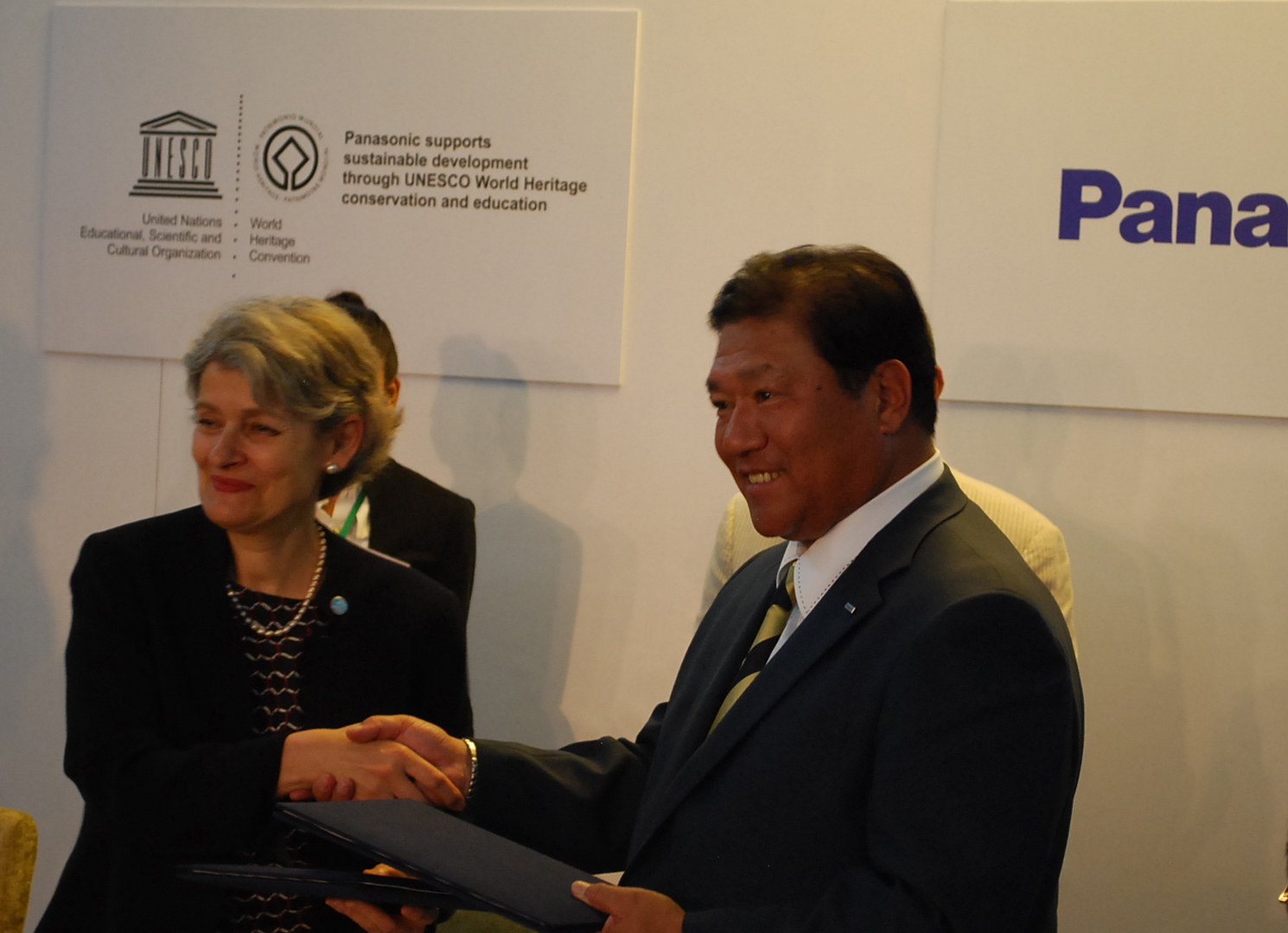 Die Rahmenvereinbarung wurde von der UNESCO-Generaldirektorin Irina Bokova und Senior Managing Executive Officer der Panasonic Corporation Takumi Kajisha in Phnom Penh in Kambodscha anlässlich der 37. Tagung des Welterbe-Komitees (World Heritage Committee) unterzeichnet. Ziel der Partnerschaft ist, den Schutz von UNESCO-Welterbestätten zu verbessern und das Umweltbewusstsein der kommenden Generationen durch das Welterbe-Bildungsprogramm zu fördern. Durch diese Partnerschaft hat Panasonic während der letzten zwei Jahre (Juni 2011 bis Mai 2013) gemeinsame Programme auf den Gebieten „Bildung für die nächste Generation“, „Kommunikation“ und „technologische Unterstützung“ gefördert. Infolge der Erneuerung des Partnerschaftsabkommens plant Panasonic diese Programme weiterhin aktiv zu fördern und zu entwickeln.