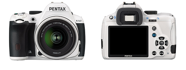 Die Pentax K-50 ist standardmäßig in drei Ausführungen Mattschwarz, Mattweiß und Rot als Gehäuse oder im Kit erhältlich. Das Standardzoom wird jeweils in der Gehäusefarbe geliefert. Zudem haben Käufer mittels eines Kamerakonfigurators auf der Pentax Ricoh Imaging Webseite die Möglichkeit, sich aus insgesamt 120 Farbkombinationen und 4 Objektivfarben (weiß, schwarz, rot, rosa) seine eigene Farbvariante auszuwählen. Diese kann bei einem Händler bestellt und nach 4-6 Wochen dort in Empfang genommen werden.