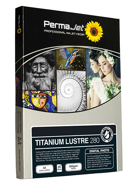 Permajet Titanium Lustre 280:Inkjet-Medien mit Metallic Looc.