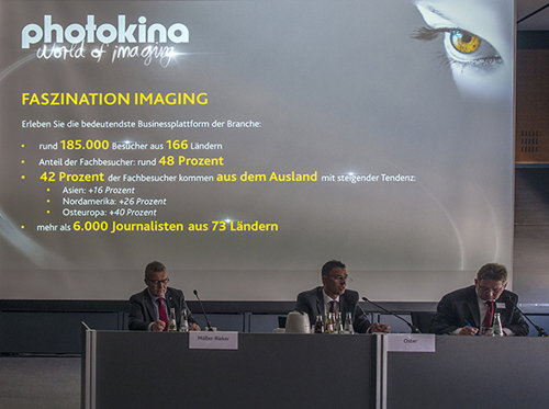 Die Pressekonferenz zur photokina im 175. Geburtsjahr der Fotografie: v.l.n.r. Christian Müller-Rieker Photoindustrie Verband, Markus Oster und Michael Steiner, Köln Messe