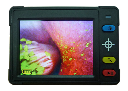 Mit der „Freeze“-Taste kann der gewünschte Bildausschnitt eingefroren werden, um diesen dann in aller Ruhe lesen oder untersuchen zu können. Dabei verfügt das Display über eine Auflösung von 640 x 480 Pixel. Der Bildajusschnitt kann in den drei verschiedenen Farbmodi Vollfarben, Schwarz auf Weiß und Weiß auf Schwarz angezeigt werden. Zudem kann die Digitale Lesehilfe auch ganz einfach an einen Fernseher oder einen beliebigen Monitor angeschlossen werden.