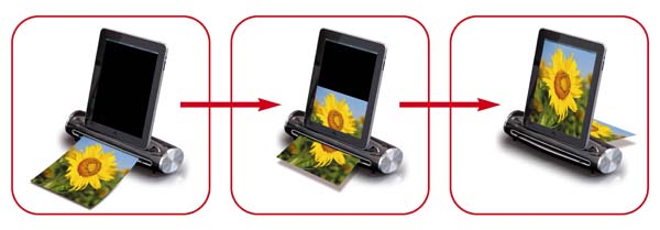 Mit dem neuen Einzugsscanner „iPad-Scan“ lassen sich Vorlagen bis zu einer Größe von 21,59 x 35,56 cm in einer Auflösung von 300 dpi per Automatikeinzug direkt auf alle iPads scannen. Dazu wird das iPad einfach auf dem reflecta iPad-Scan platziert und das Dokument in den Einzugsschlitz geschoben. Der Anwender kann den Scanvorgang in Echtzeit auf dem iPad-Display verfolgen. Das Gerät speichert die Scans im JPEG-Format. Der reflecta iPad-Scan lässt sich auch als Docking-Station für das iPad nutzen.