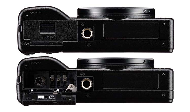 Bodenklappe der Ricoh GR IV geschlossen und offen