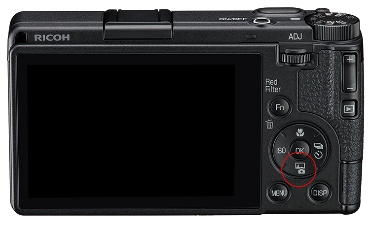 Besonderes Merkmal der GR IV Monochrome: der integrierte physische Rotfilter (rote Markierung).