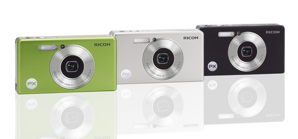 Die Ricoh PX wird es in den drei Farben Limetten-Grün, Champagner-Silber und Schwarz geben.