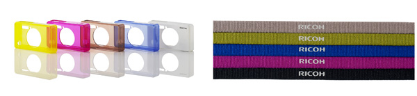 Optional erhältlich: farbige Schutzhüllen und Trageriemen zur Ricoh PX.