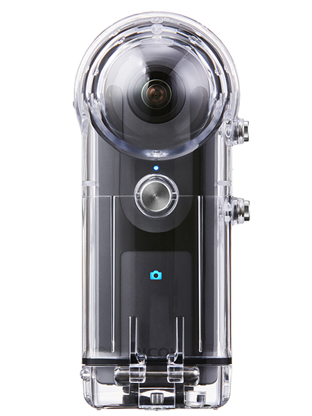Die Bedienung der Kamera erfolgt über vier Tasten. Die drei Tasten für Ein- und Ausschalten, die Aufnahmeart und der Auslöser machen Foto- und Videoaufnahmen in 360 Grad spielend einfach möglich. Eine weitere Taste öffnet den Weg in die große weite Welt. Mit der WLAN-Taste wird der Kontakt zu einer Internetverbindung hergestellt. Installierte Apps ermöglichen das Steuern von Kamerafunktionen und die Bildübertragung. So können die Fotos und Videos gleich nach der Aufnahme in den Kanälen der Sozialen Netzwerke geteilt werden – mit der neuen Ricoh Theta V bis zu 10x schneller als bisher.