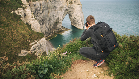 Die Rucksäcke und der Sling Bag bieten ein Schnellzugriffsfach für die Kamera, lassen sich aber auch komplett öffnen. Dabei bleibt der Deckel vollständig geöffnet liegen. So besteht die Möglichkeit, bequem und ohne Umstände an alle Inhalte zu gelangen. Zudem haben alle Ausführungen spezielle Fächer für SD-Karten, Tablet oder Laptop, Netze für beispielsweise Mikrofasertücher und eine Außenvorrichtung, um ein Stativ zu verstauen.