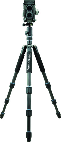 Das Stativ kommt inklusive Panorama-Kugelkopf T-3S mit drei eingebauten Wasserwaagen zur horizontalen und vertikalen Ausrichtung und eignet sich mit 15 Kilo Traglast auch für den Einsatz von Kamera-Schwergewichten. Stativ und Kugelkopf gibt es in den Farben Titan, Gold, Orange und Blau zusammen mit einer Stativtasche