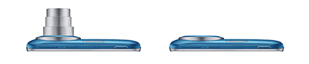 Das 10fach Zoom des Samsung K Zoom Smartphones ausgefahren und im Gehäuse versenkt.
