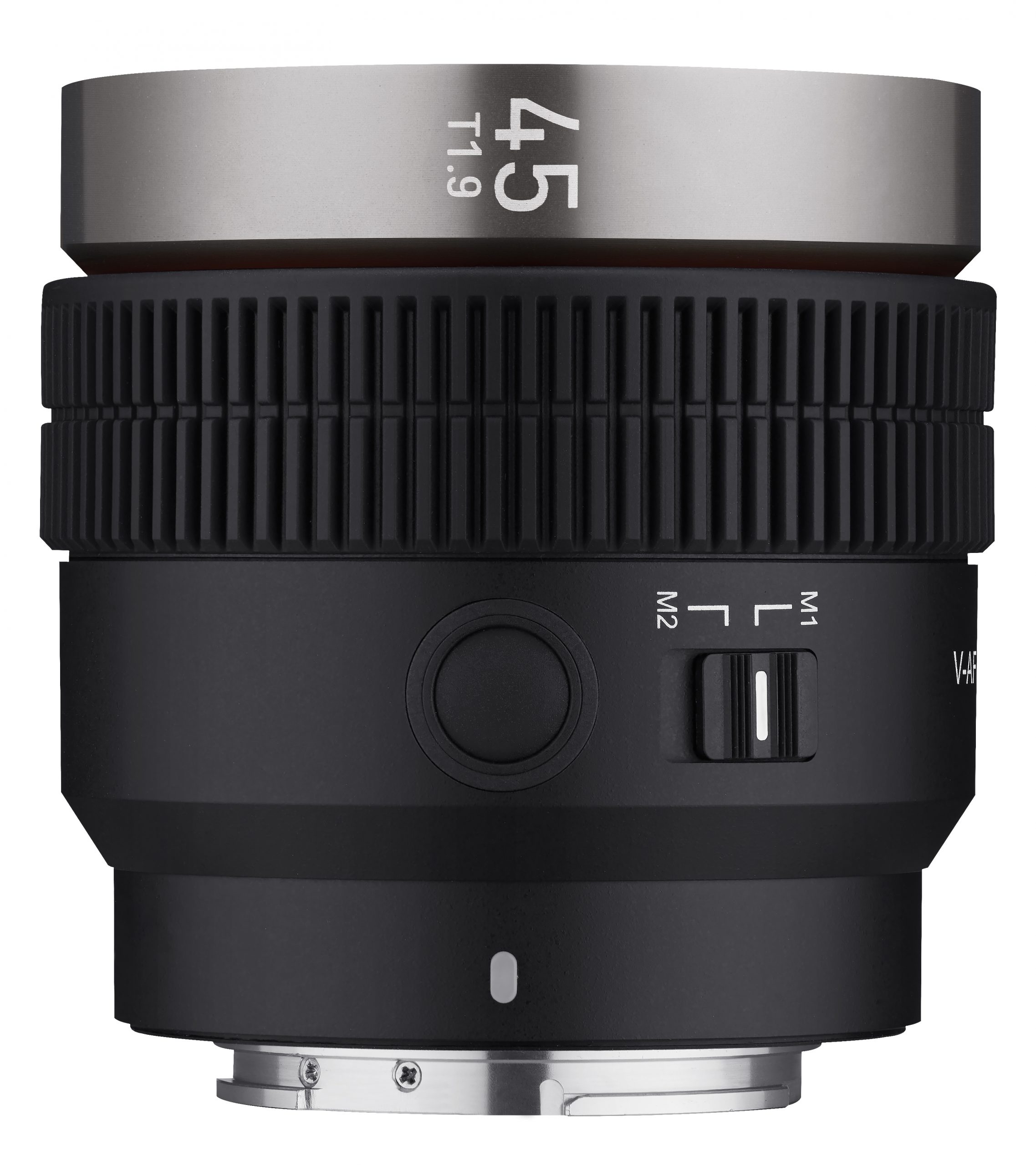 Seitenansicht des neuen Samyang V-AF 45 mm T1.9 für Sony E-Mount Kameras
