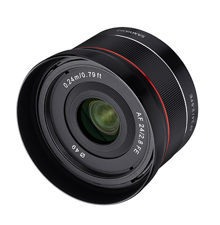 Frontansicht SamyangAF 24mm F2.8 FE AF-Objektiv für Sony E-Mount.