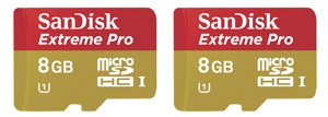 Die neue SanDisk Extreme Pro microSDHC UHS-I-Karte mit 8 und 16 GB Speicherkapazität.