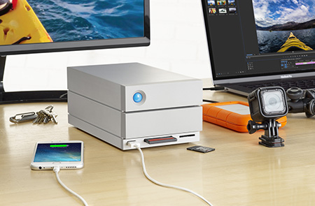 Das neue LaCie 2big Dock wendet sich speziell an Fotografen und Filmer. Die leistungsstarke Speicherlösung präsentiert sich als schlanke, Docking-Station mit Anschlüssen für die unterschiedlichsten Geräte. Laptop, Secure Digital Memory (SD)-Karten, CompactFlash (CF)-Karten und andere Geräte können direkt verbunden werden. Mit bis zu 20 TB Speicher – 25 Prozent mehr als bei der Vorgängerversion – bietet die LaCie 2big Dock professionellen Anwendern ausreichend Platz für große Video- und Fotobibliotheken mit bis zu 650 Stunden 4K 30 bp/s Filmmaterial oder 200.000 RAW-Bildern. Durch die Übertragungsgeschwindigkeit von bis zu 440 MB/s können Nutzer eine Stunde 4K Filmmaterial in nur einer Minute transferieren. Das bedeutet auch, dass nahezu keine Zeitverzögerung beim Durchsuchen von Fotobibliotheken in Adobe Lightroom entsteht. Durch die Arbeit mit komprimiertem 4K- oder HD-Filmmaterial können Videofilmer das Material zudem schnell und einfach in Adobe Premiere Pro bearbeiten.