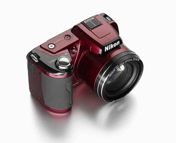 Coolpix L110 – Moderne Technologie wird in diese Kamera mit hoher Benutzerfreundlichkeit kombiniert. Ein Nikkor Weitwinkelzoomobjektiv mit 15fachem Brennweitenbereich verspricht hohe gestalterische Freiheit beim Fotografieren und Filmen inm HD-Qualität mit Stereoton. Weitere Kennzeichen für Qualität und Flexibilität sind der 12,1-Megapixel-Sensor, fünf Funktionen für die Reduzierung von Verwacklungs- und Bewegungsunschärfe und die Möglichkeit für Makroaufnahmen aus nur 1 cm Abstand zu machen.Weiterhing bietet die Kamera 15 Motivprogramme sowie eine Motivautomatik, die das Motiv und die Umgebungsbedingungen analysiert und automatisch das zur Aufnahme passende Motivprogramm wählt. Die Coolpix L110 gibt es in Rot und Schwarz.