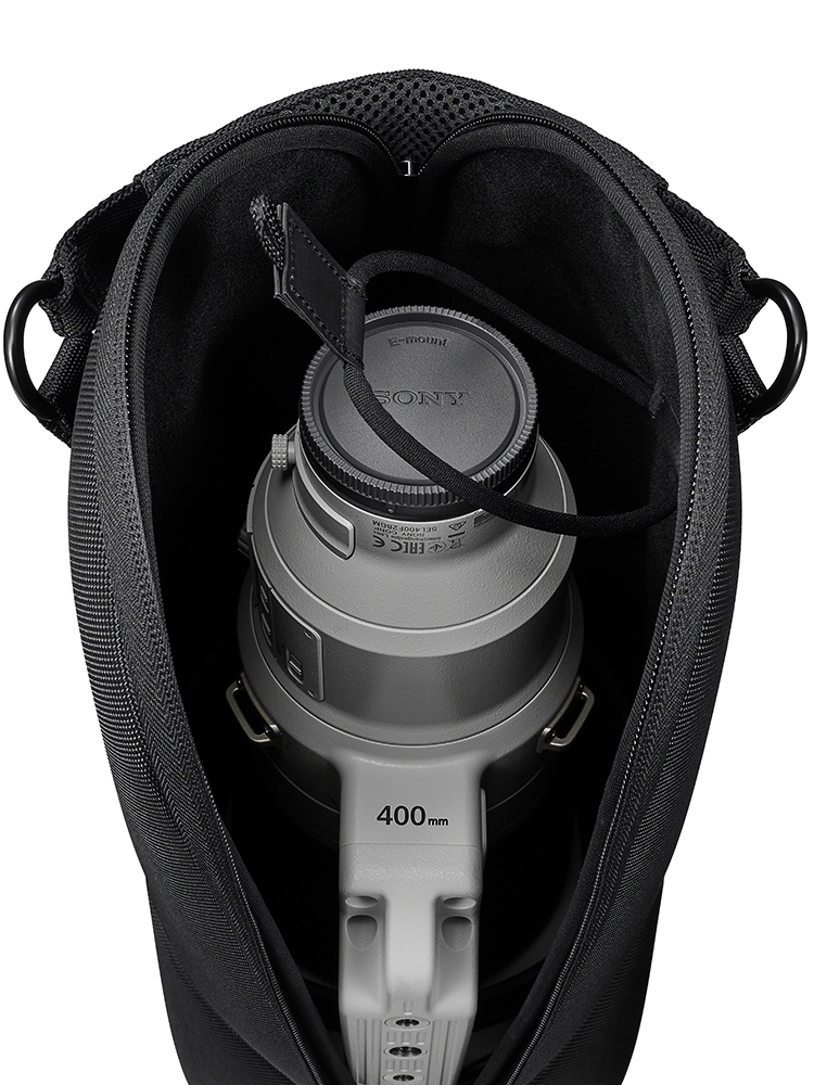 Für Alle, die große Objektive transportieren, bietet Sony künftig eine neue weiche Tragetasche an. Sie schützt vor Staub und Kratzern und ist durch ihre konische Form optimal auf die langen Alpha-Superteleobjektive abgestimmt.
