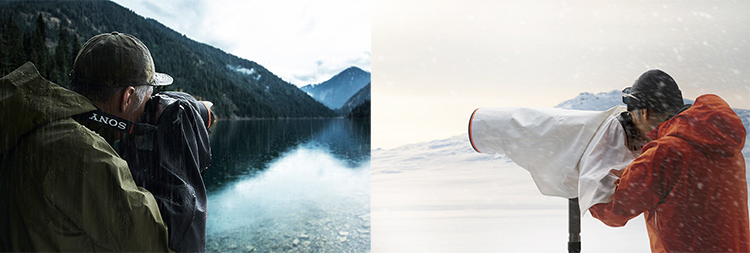 Die neue Sony-Regenhülle ist für den Einsatz bei widrigen Wetterbedingungen konzipiert. Sie schützt Kamera und Objektiv vor Regen und Schnee und besteht aus einem atmungsaktiven Material mit einer Wasserdampfdurchlässigkeit von 20.000 g/m²/24h oder mehr. Damit soll sich auch bei langen Aufnahmen keine Feuchtigkeit im Inneren bilden.