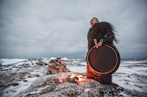 „Nur indem wir das Eis im Herzen der Menschen schmelzen, hat der Mensch die Chance, sich zu ändern und sein Wissen weise anzuwenden,“ so Angaangaq Angakkorsuaq, Mentor des Projektes und grönländischer Schamane.