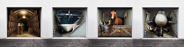 „Style-your-garage.com“ bietet eine große Auswahl von Foto-Planen für Garagentore, die individuell zeigen, was jeder gerne in seiner Garage hätte. Die angebotenen Motive reichen vom echten Kampfjet, schicke Boote, rassige Pferde bis hin zum urigen Weinkeller.