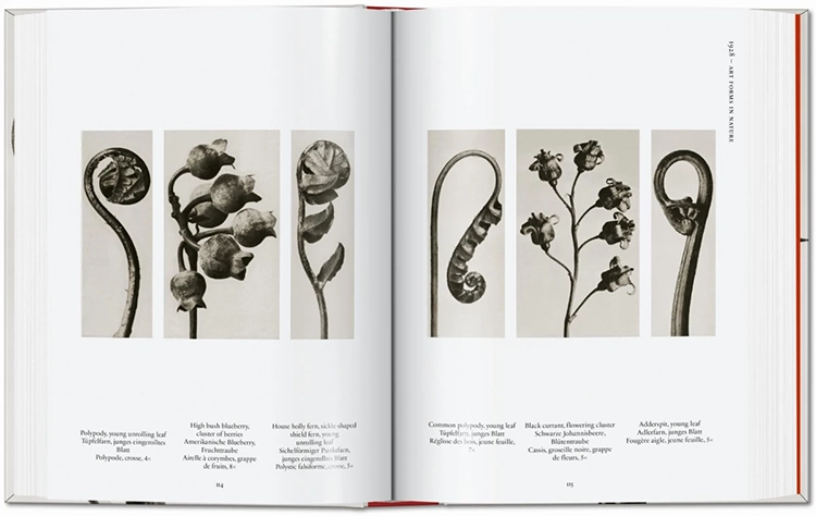 Im gleichen Sinn hat sich Karl Blossfeldt selbst noch 1932 in seinem ebenfalls in dem Buch abgedruckten Text unter dem Titel „Wundergarten der Natur“ geäußert, indem er feststellt, dass die Natur nicht nur in der Kunst, sondern auch auf dem Gebiet der Technik unsere beste Lehrmeisterin ist: „Sie ist eine Erzieherin zur Schönheit und Innerlichkeit und eine Quelle edelsten Genusses.“