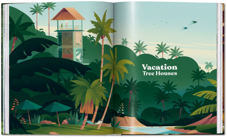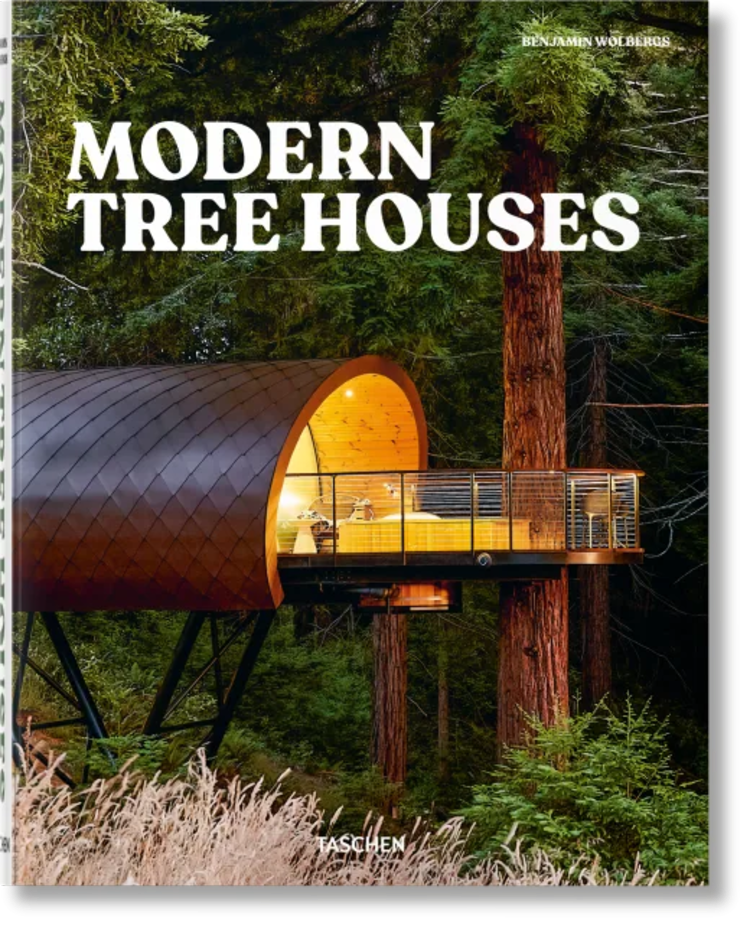 Herausgegeben von dem Artdirector Benjamin Wolbergs, gestaltet von der französischen Illustratorin Marie-Laure Cruschi und versehen mit Texten des freien Journalisten Florian Siebeck sowie Informationen zum jeweiligen Architekten entfaltet sich in dem im Taschen Verlag, Köln, erschienenen Bildband „Modern Tree Houses“ in fünf Kapiteln – Spielerische Baumhäuser, Versteckte Baumhäuser, Beobachtung, Ferienhäuser und Wohnanlagen – die ganze Vielfalt des Lebens unter Bäumen: Verspielte Hütten, in denen Kinder toben und klettern, versteckte Rückzugsorte für Schreibende und Denkende, Beobachtungsplattformen mit weitem Blick ins Grüne, fantastische Ferienhäuser, die Kinderträume wahr werden lassen sowie Baumhäuser zum Wohnen als gelebte Utopien eines nachhaltigen Lebens im Einklang mit der Umgebung, einerlei ob als Abenteuerplatz, Oase der Ruhe oder vollwertiges Zuhause. Einige Häuser schmiegen sich auf Stelzen in die Baumkrone, ohne sie zu berühren, andere wachsen wie selbstverständlich aus ihr hervor. Wieder andere schweben frei im Blätterdach, manche Entwürfe nutzen den Baum als Inspiration für ihre eigene Form und zeigen gleichzeitig eindrucksvoll, was Architektur im Einklang mit der Natur alles