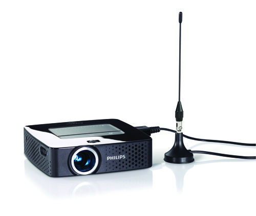 Der Philips PicoPix 3610TV bietet zusätzlich zu den Ausstattungsdetails des PicoPix 3610 die Möglichkeit, via DVB-T frei zugängliche Fernseh-kanäle direkt zu empfangen. So verpasst man weder im Büro noch beim Grillen mit Freunden die wichtigsten Fußballereignisse oder wie es in der Lieblingsserie weiter geht.
