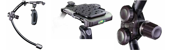 Als optionales Zubehör gibt es eine kompakte Kameratasche, für eine DSLR-Kamera mit einem Extrafach für das Schwebestativ. Ebenso ist ein Handgriff mit Tasten für die Fernbedienung der Kamera erhältlich.