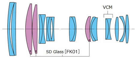Für die optische Konstruktion des Objektivs kommen 19 Linsen in 14 Gruppen zum Einsatz. Die Naheinstellgrenze beträgt 1 Meter. Durch die Kombination asphärischer Linsen sowie drei SD-Gläsern (SD = Super-Low Distortion) mit extrem niedriger Streuung und Farbaufspaltung wirken sie dem bei Telezoom-Objektiven stark verbreiteten Abbildungsfehlern wirksam entgegen.