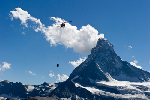 In derr Bergwelt Nepals fotografierte Manuel Bauer den Helikopter bei seiner Rettungsaktion