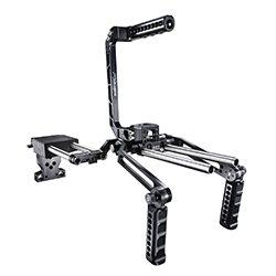 Für den mobilen Einsatz ist die Variante „Portable“ gedacht. Das extrem leichte Schulter-Rig lässt sich bequem transportieren und eignet sich für Aufnahmen von bewegten Motiven. Mithilfe des zum Lieferumfang gehörenden Winkelstücks für die Schulterstütze können Filmer mit wenigen Handgriffen zwischen einem Set-Up für Viewfinder oder externem Monitor wechseln. Die Kompatibilität der einzelnen Zubehörteile ermöglicht die einfache Erweiterung der Sets für unterschiedliche Einsatzzwecke.