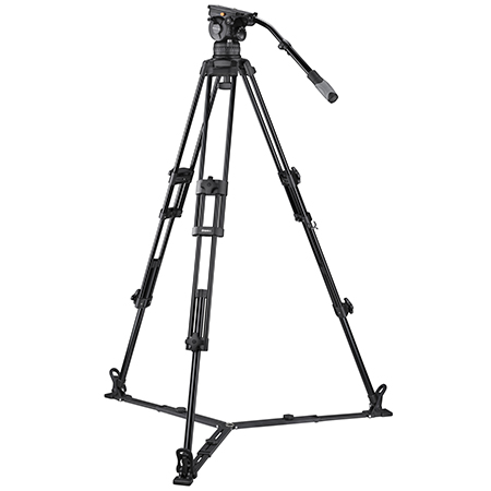 Das walimex pro L Videostativ mit Bodenspinne uind Neigekopf.