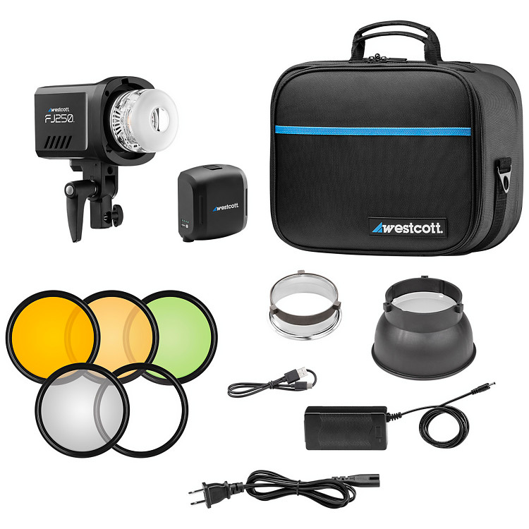 Eine umfangreiche Zubehörpalette erweitert die Einsatzmöglichkeiten des FJ250 Blitzgerätes von WEstcott.
