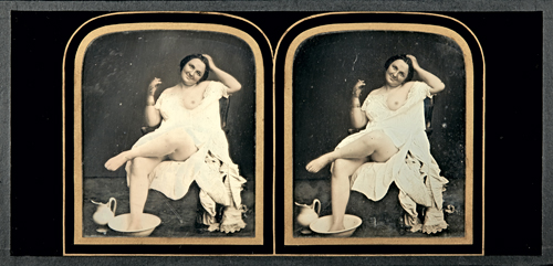 Anonymer Fotograf (Frankreich) Akt mit Zigarette und Fußbad, Paris ca. 1855, Stereodaguerreotypie,