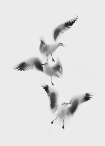 Der 1. Preis von „Blende 2014“ geht an Heinz Fahrion, Leser der Esslinger Zeitung, der mit seiner Aufnahme „Flügel Ballett“, zum Thema „Schwarzweiß“ eingereicht, die Juroren der bundesweiten Endausscheidung einstimmig überzeugte. Die Aufnahme lebt von der Reduktion auf die drei Möwen als einziges Bildelement. Bewusst und geschickt wurde vom Bildautor die Reduktion auf Schwarzweiß ebenso gewählt wie das Hochformat. Dotiert ist der 1. Platz mit einer Samsung Kameraausrüstung, einem Jahresabonnement der Fotofachzeitschrift „ProfiFoto“, Goldmedaille und Urkunde.